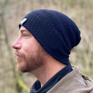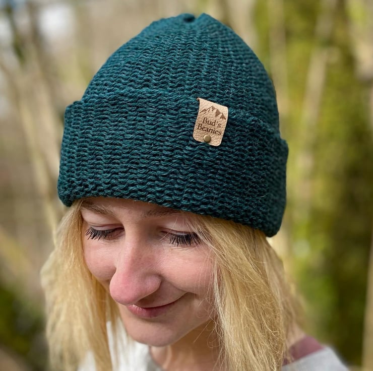 Fisherman style beanie hat in colour 'Wintergreen’ (Forest Green). Knitted in a double layer for optimal cosiness with 100% wool and a faux-leather tag.