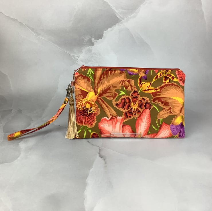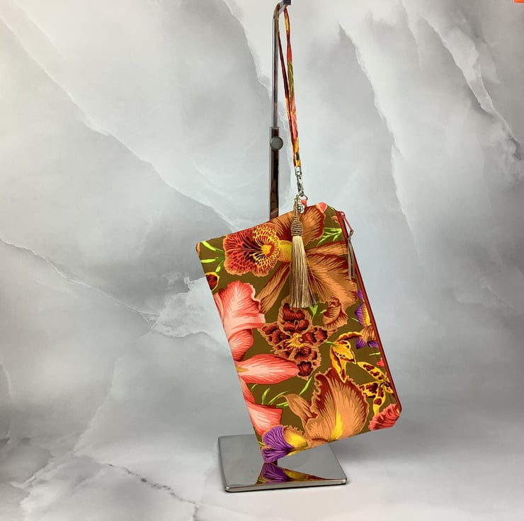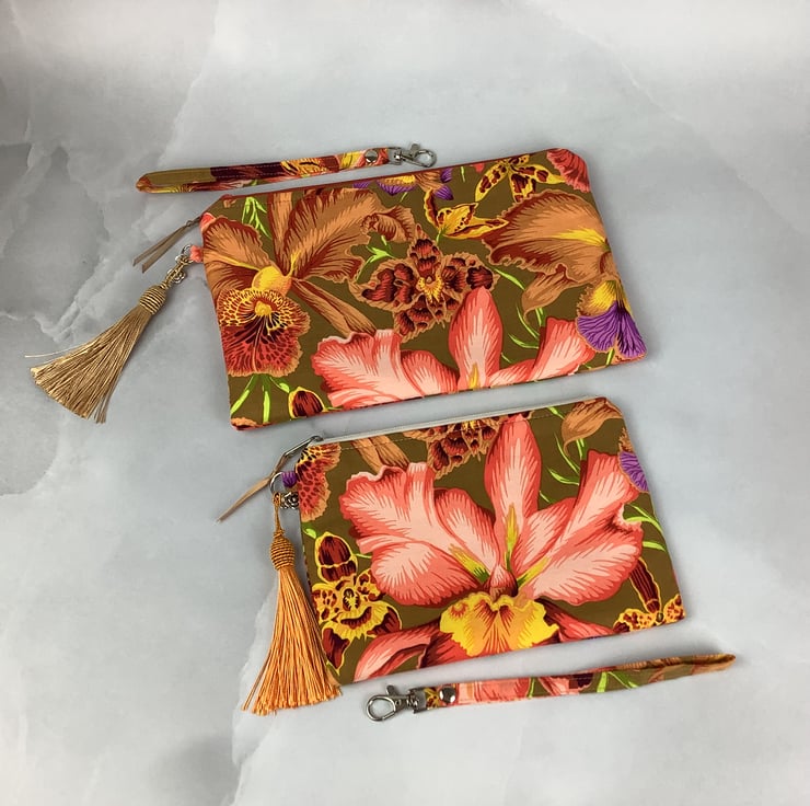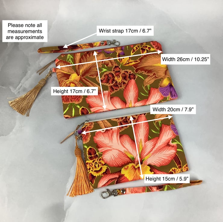 Each of my unique zip clutches is individually made by me in my relaxing and tranquil little West Sussex garden studio so the pattern placement may vary slightly.