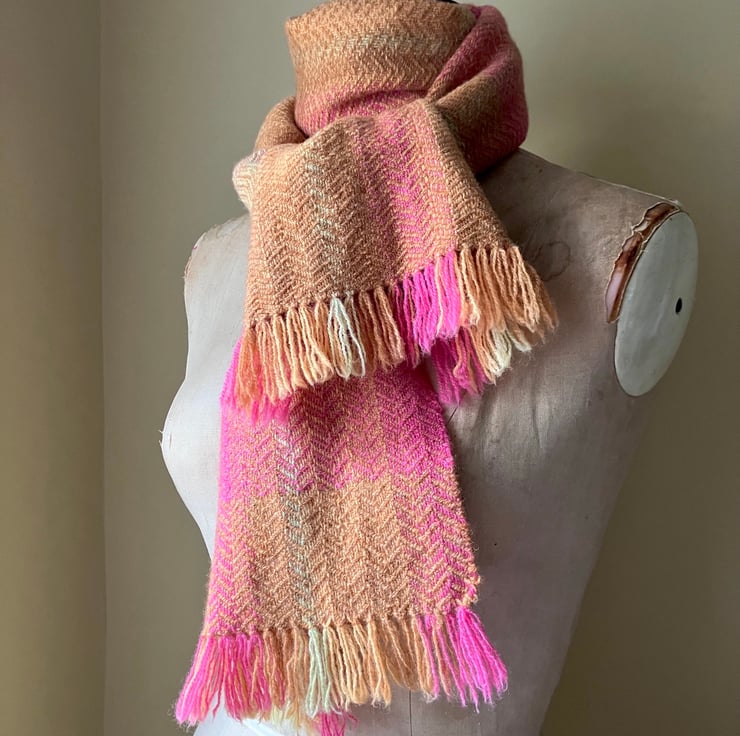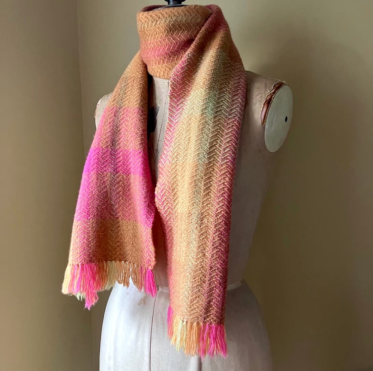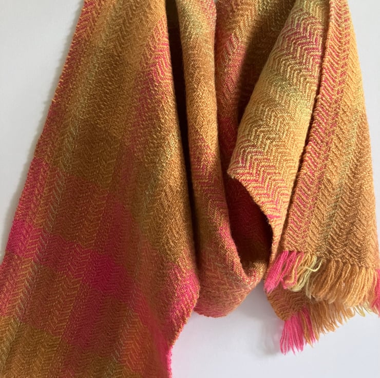 A luxurious scarf handwoven using soft Merino Lambswool.