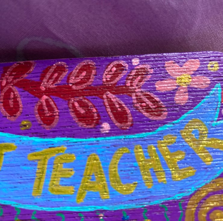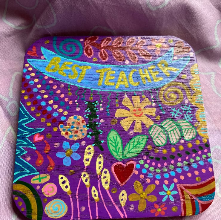 This BEST TEACHER coaster has been hand painted in an abstract doodle design making it an original gift.