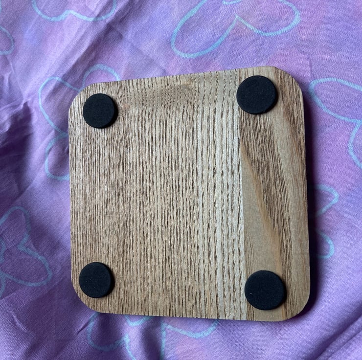 It measures approx 9.5cm x 9.5cm and has a matt varnish finish