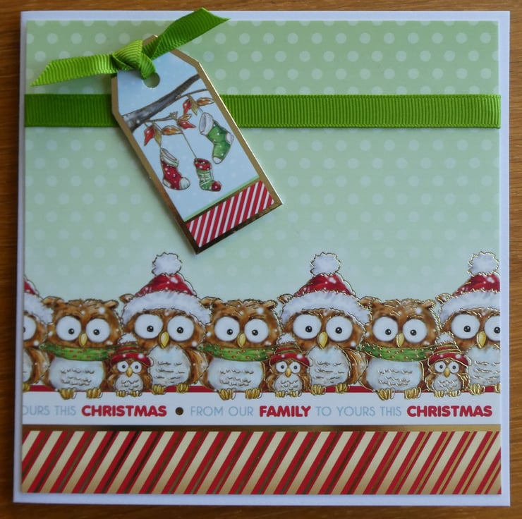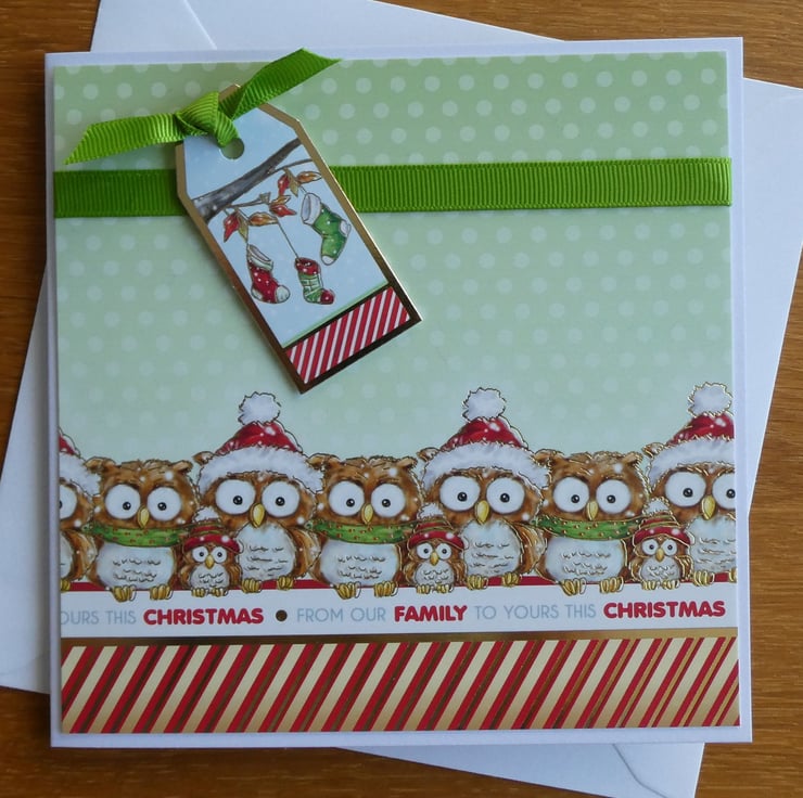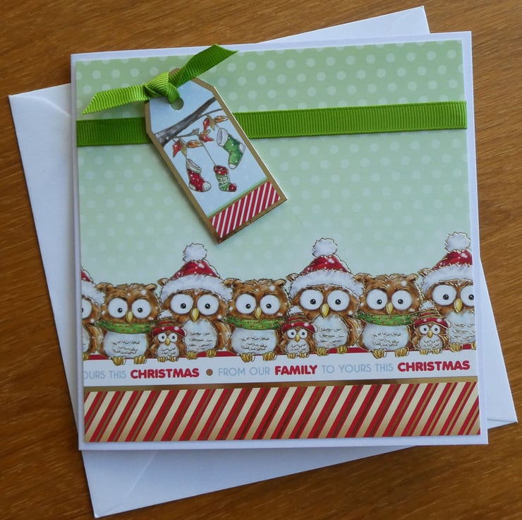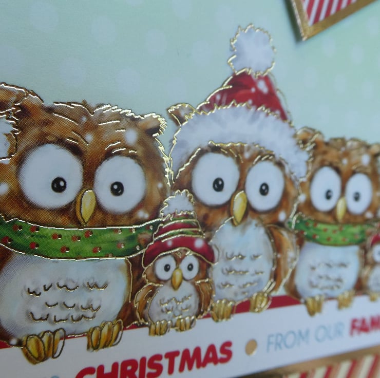 This one of a kind Christmas card with images of owls and the message From Our Family To Yours This Christmas would be ideal to send to friends or neighbours.