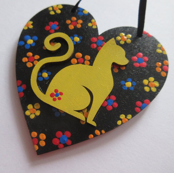 This is an 8cm x 8cm wooden heart shape, hand painted, and embellished with a wooden hand painted cat.