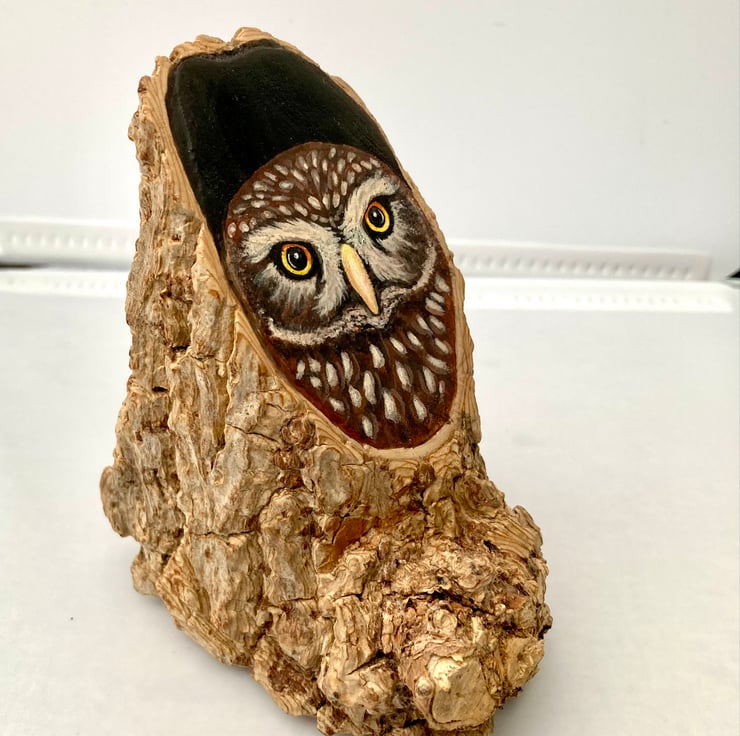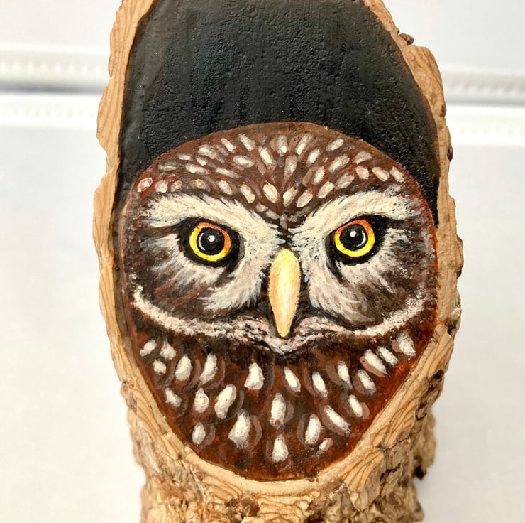 Hand painted on to a small piece of branch cut from my black lace ( sambucus nigra) bush.