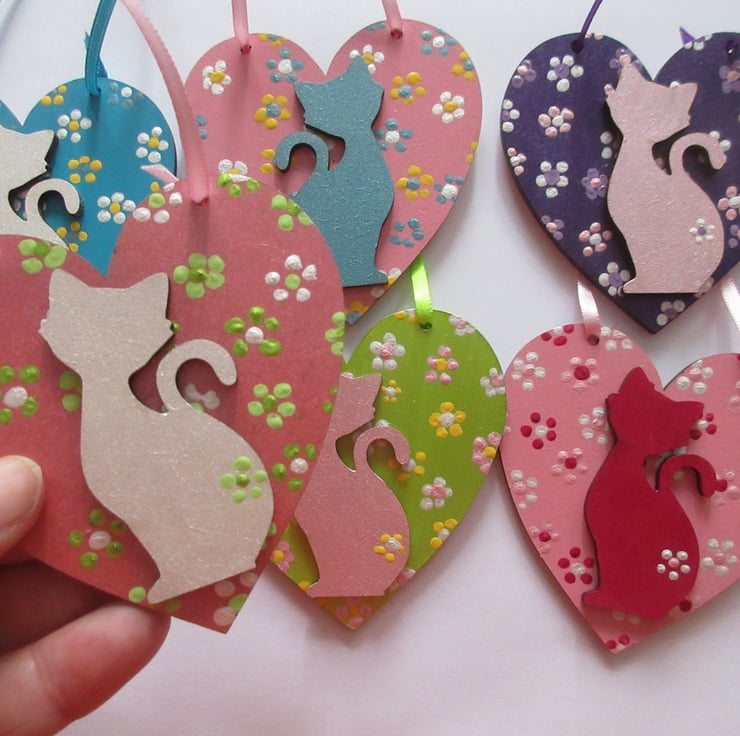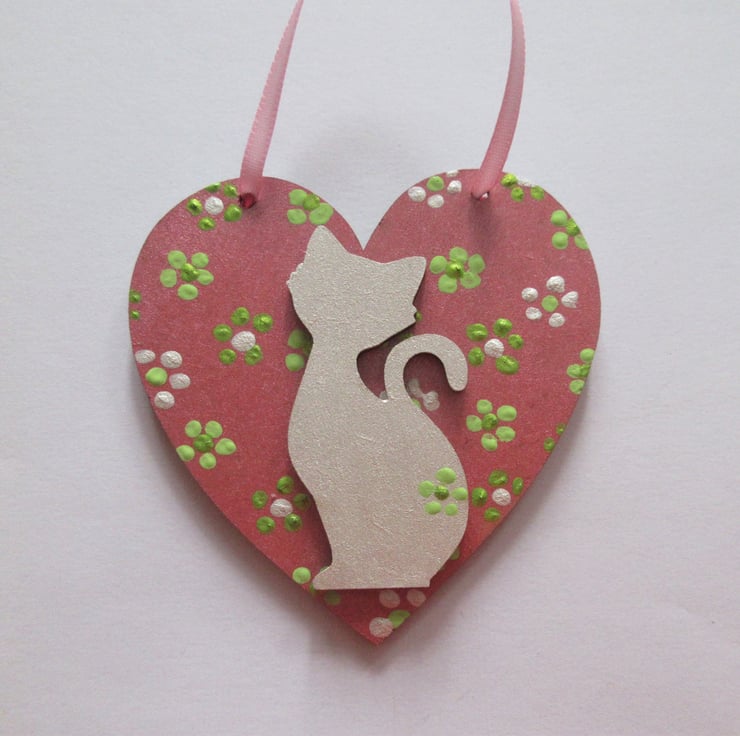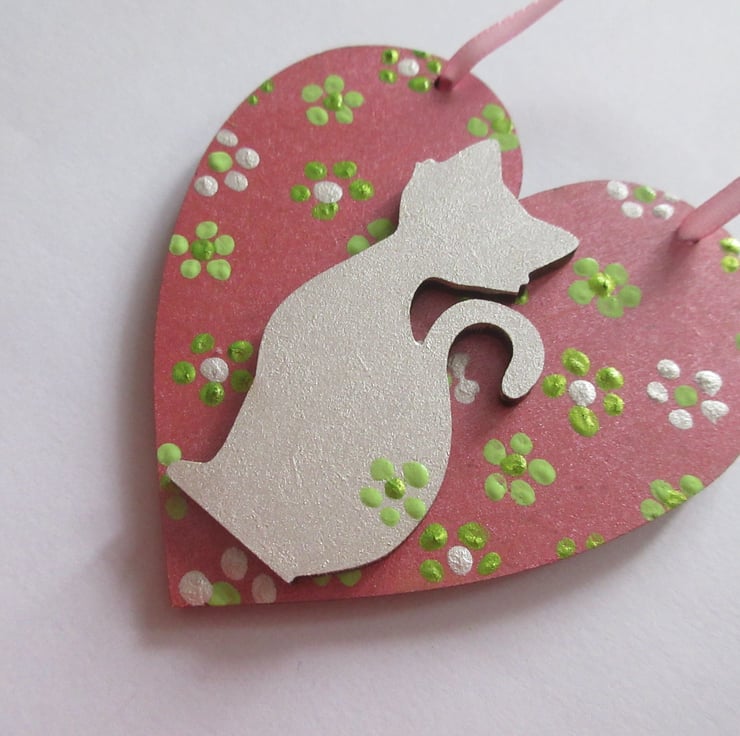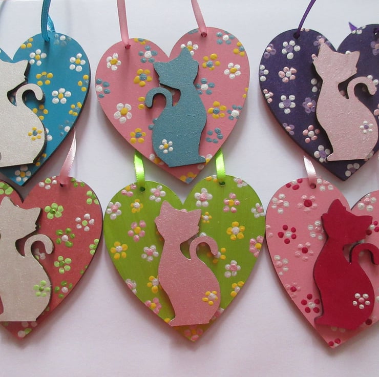 This is an 8cm x 8cm wooden heart shape, hand painted, and embellished with a wooden hand painted cat.