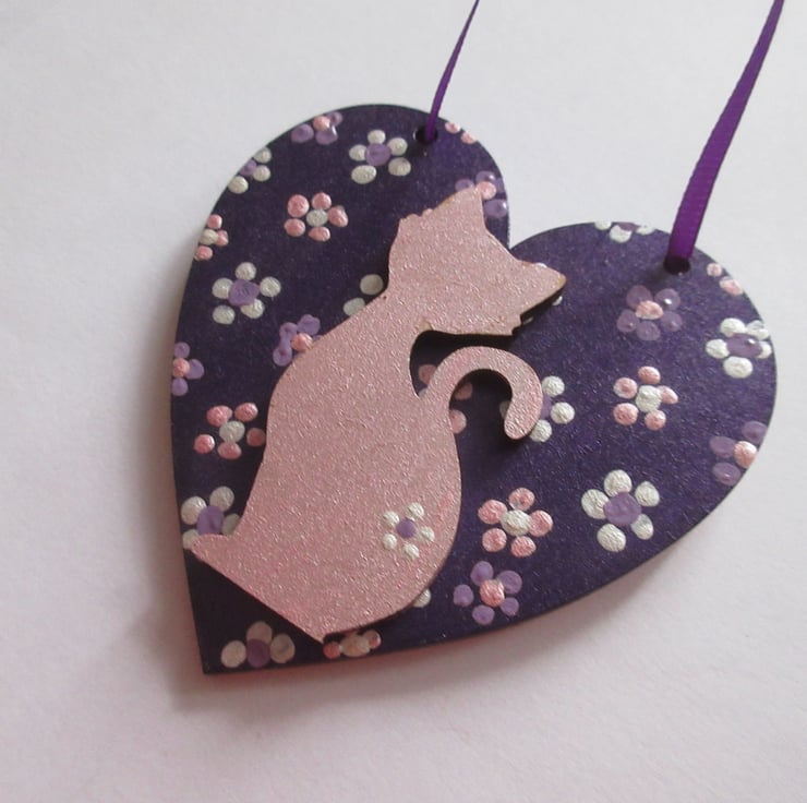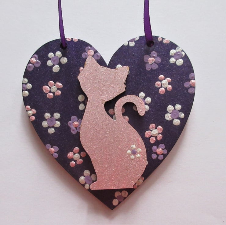 This is an 8cm x 8cm wooden heart shape, hand painted, and embellished with a wooden hand painted cat.