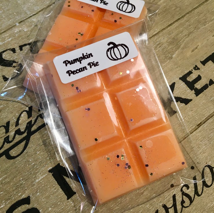 Handmade soy wax melt snap bars in Pumpkin Pecan Pie fragrance