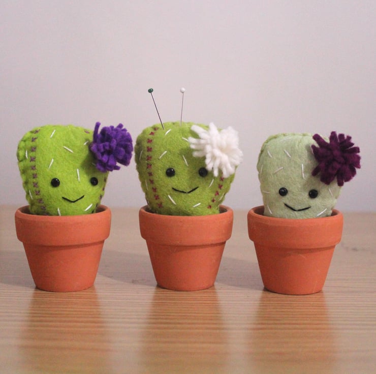 These handmade felt cacti are the perfect addition to your craft room with their cute, quirky personalities! Can be used as a pin cushion or put in any room as an alternative to a real live plant that doesn't need watering!