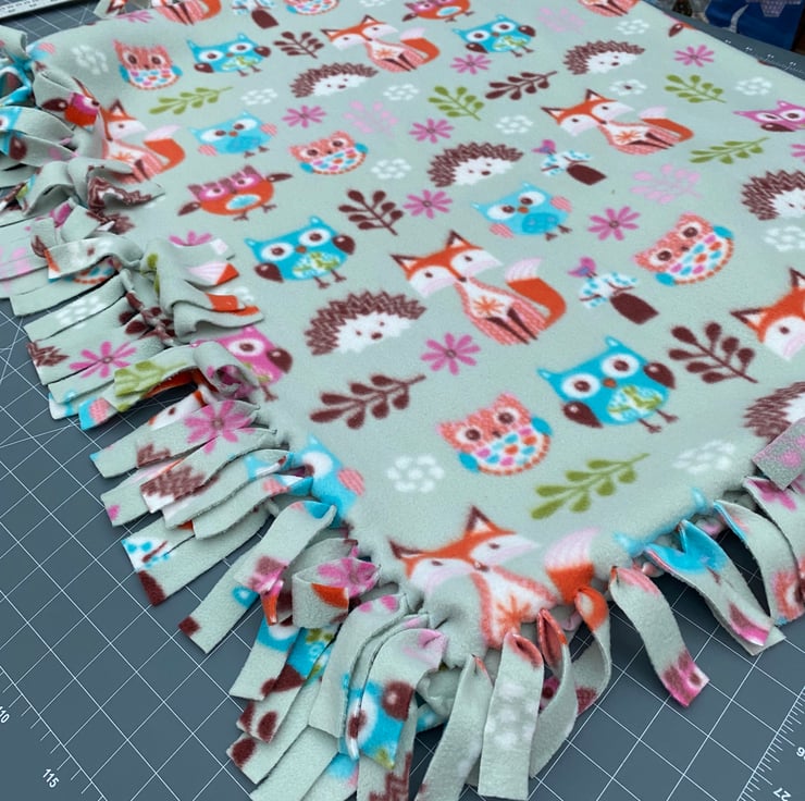 A Fleece Blanket with Woodland Animal Design. For Young or Elderly to Cuddle.