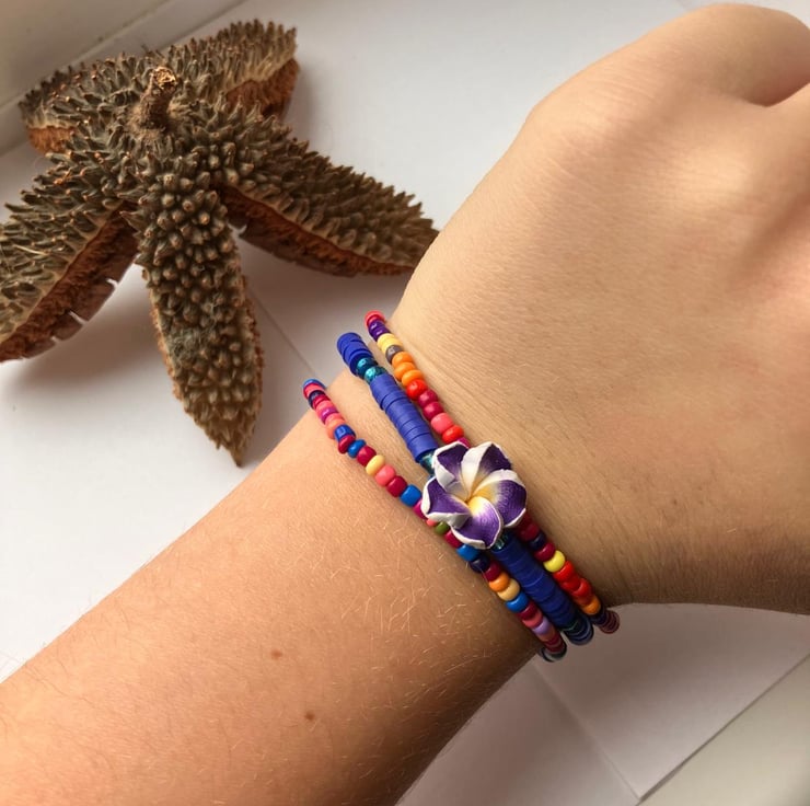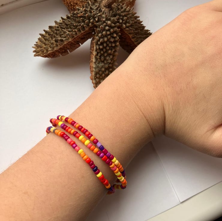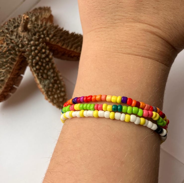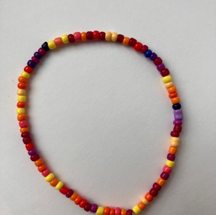 Made with love from sturdy, clear elastic and 2mm glass seed beads.