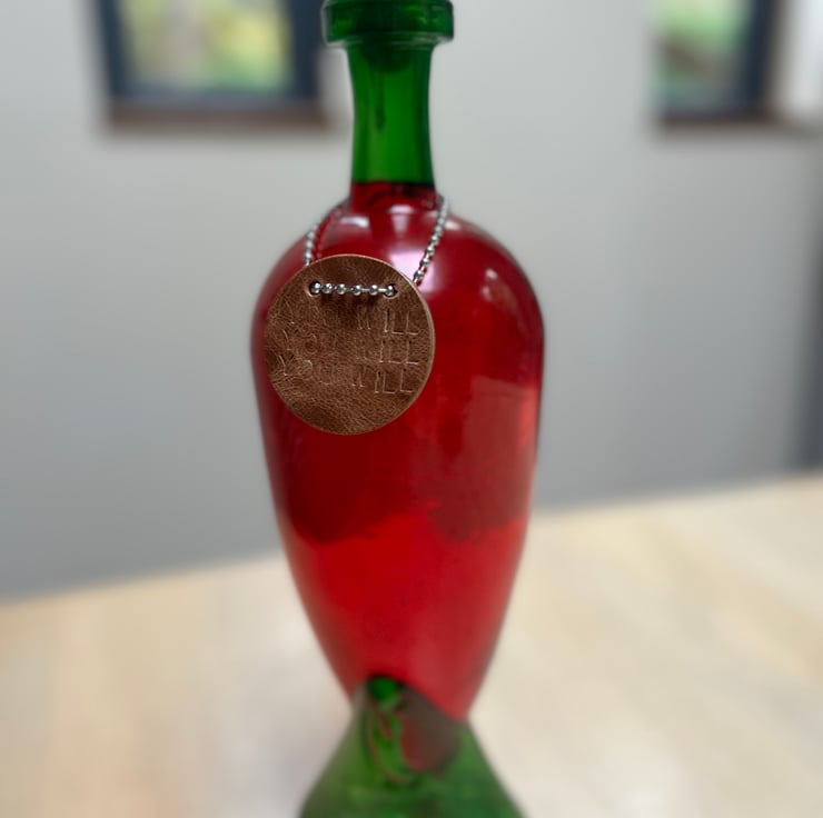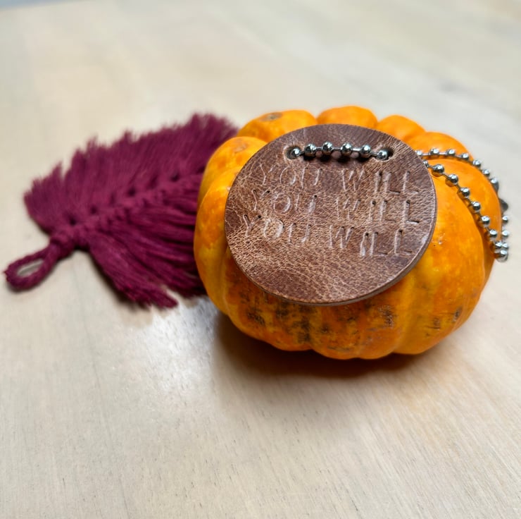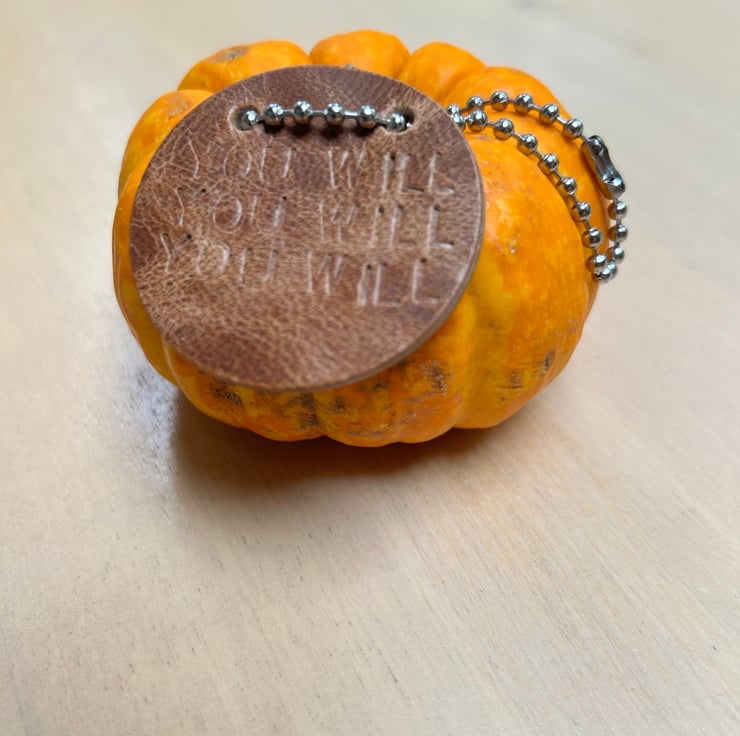 This fun Father Ted inspired leather disc "You Will You Will You Will" will make everyone smile and make a statement for a special bottle or decanter.
