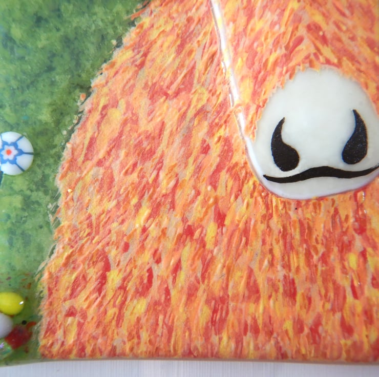 Once complete it was fired in my kiln at a temperature of 750oC. This takes 14 hours and allows the different glasses to gently melt and merge together.