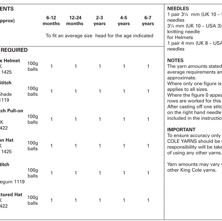 Knitting instructions for 6 Hats are included in this King Cole Double