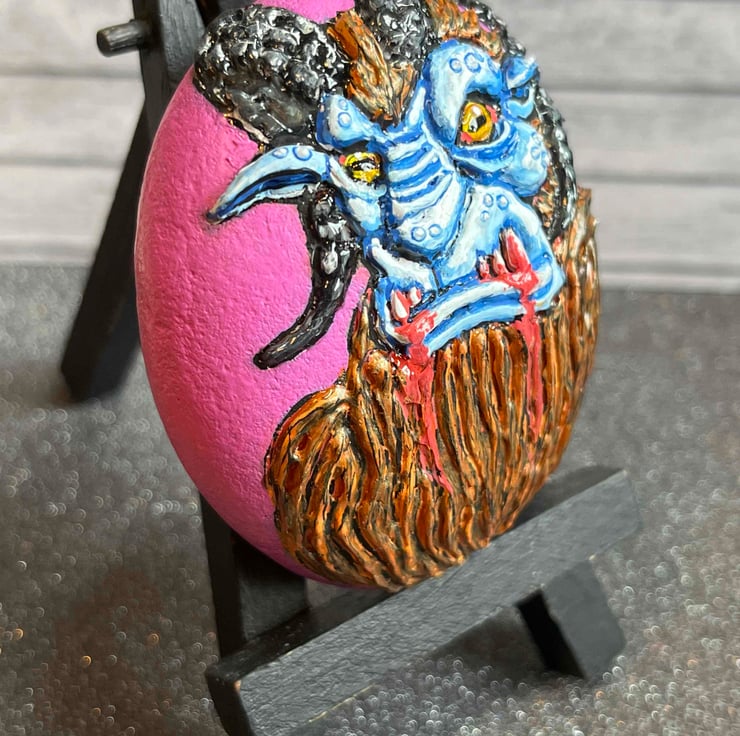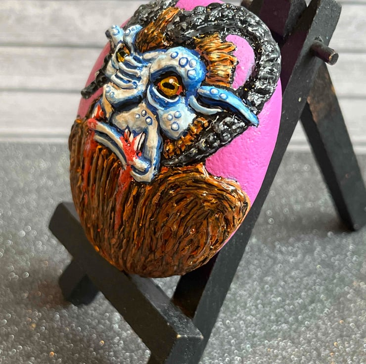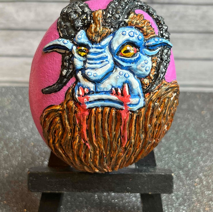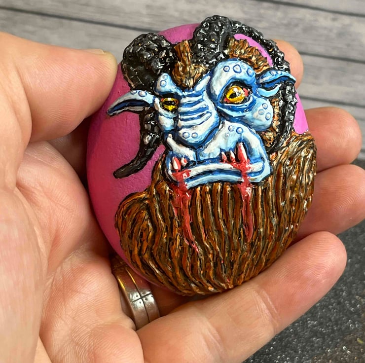 Hand painted and part sculpted Goatman (Cryptid creature) stone in acrylic and 3D Pearl effects (Craft Resin)