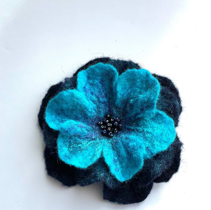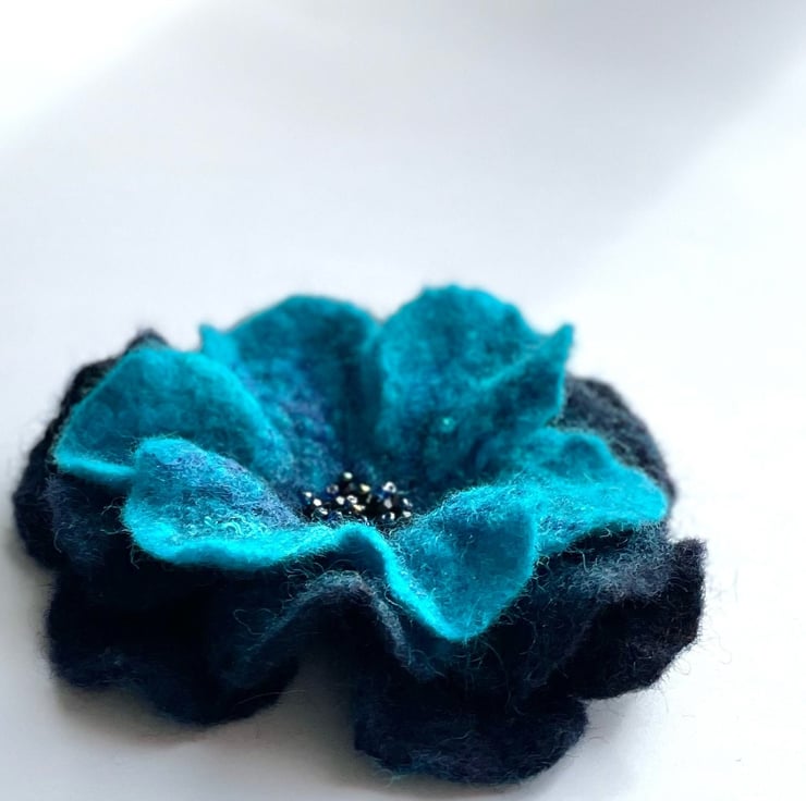Flower Blue Brooch Handmade Item Wool Felt Flower Pin Unusual Jewellery Handmade