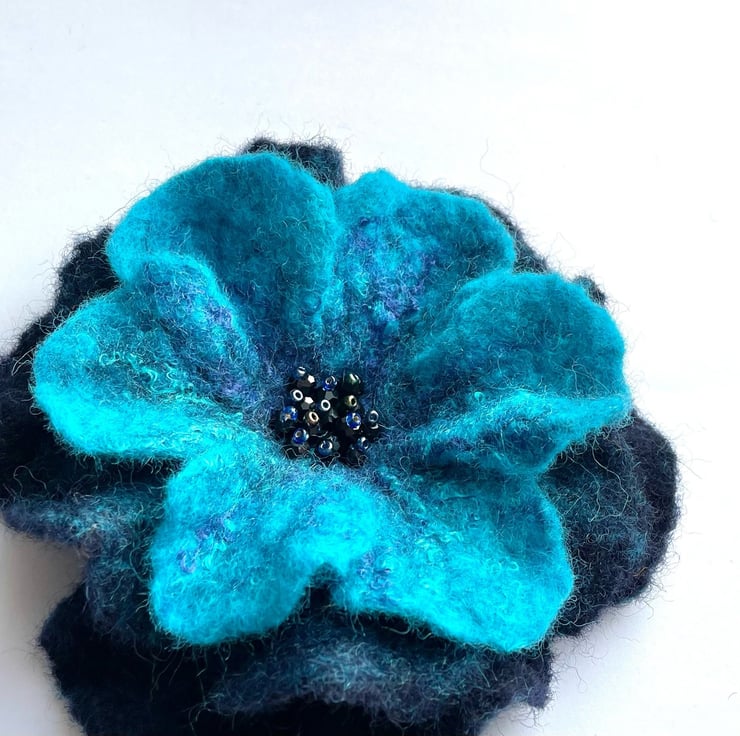 The flower brooch is handmade by me in wet felting technique with gentle olive soap and warm water. It is made of merino wool, decorated with beads.