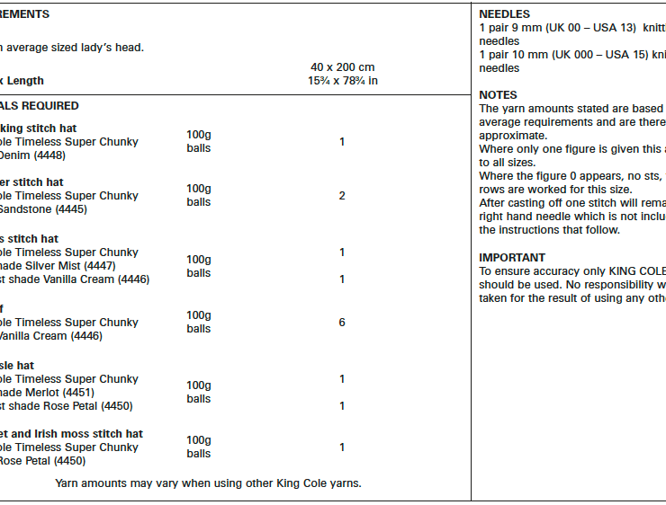 Knitting instructions for 5 Hats and a Scarf are included in this King