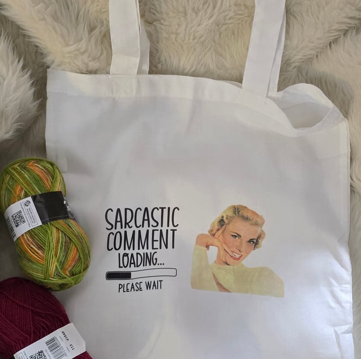 Cute and sassy tote, perfect for setting the tone on a trip out into the big wide world where the people are! Or just for storing craft projects.