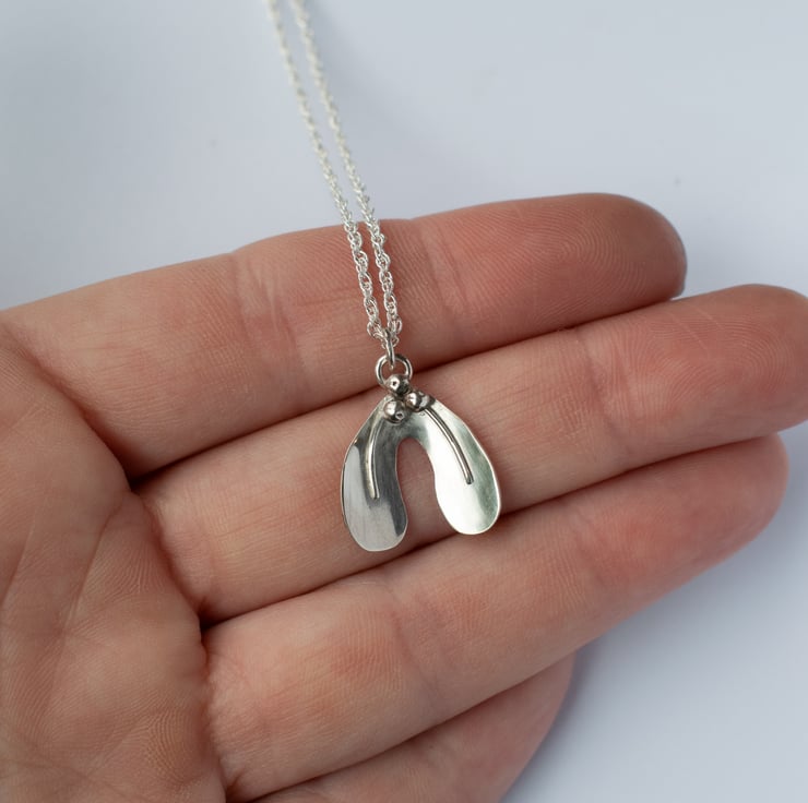 Mistletoe necklace handmade in sterling silver. The perfect piece of Christmas jewellery for a loved one.