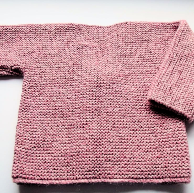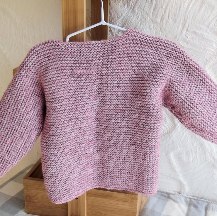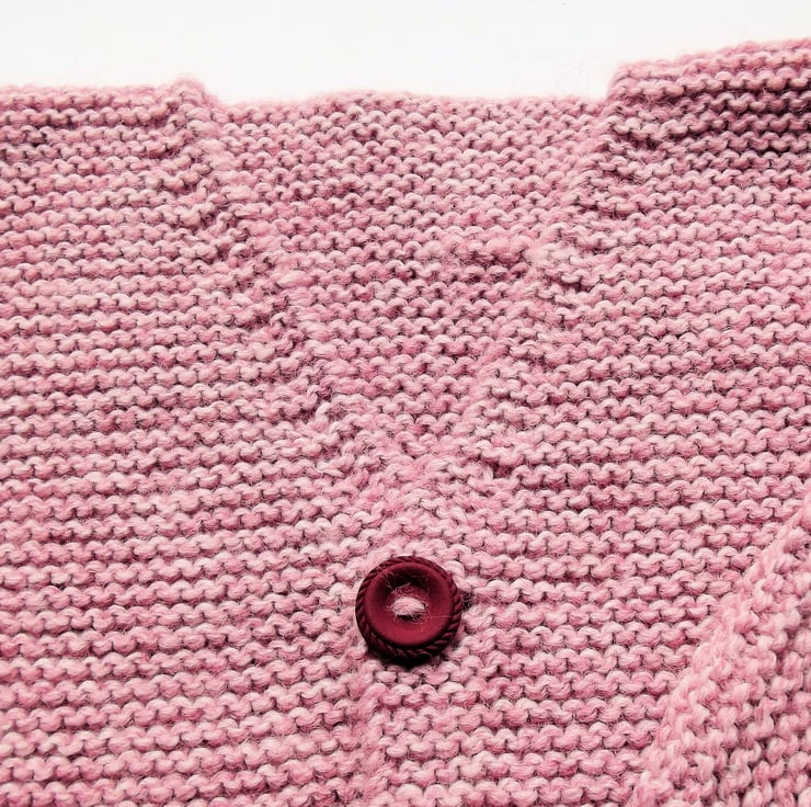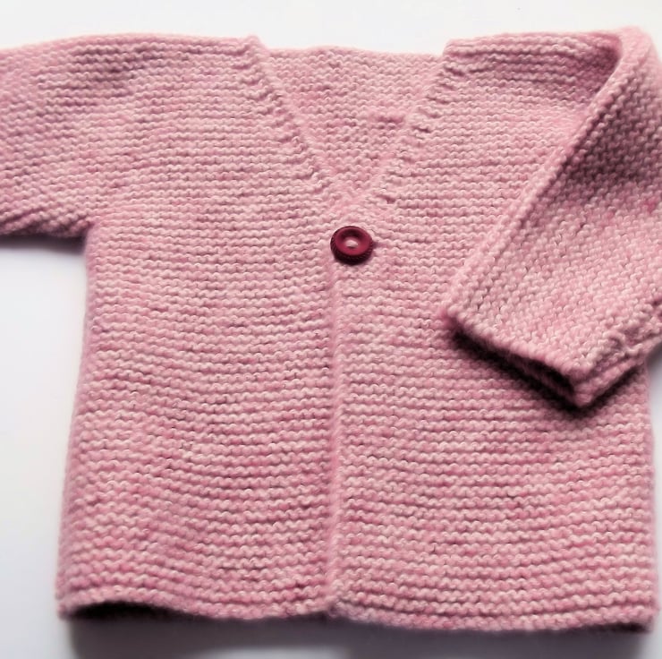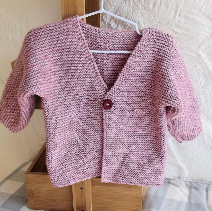 Hand knitted by me. Heather PinkCardigan Jacket. V neck with 1 button closure. Knitted in medium weight acrylic blend yarn. hm56