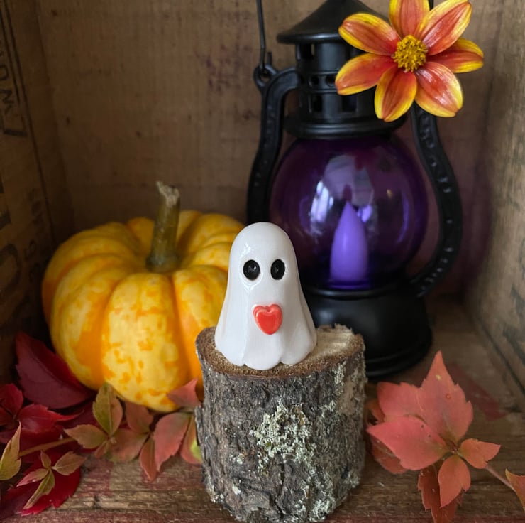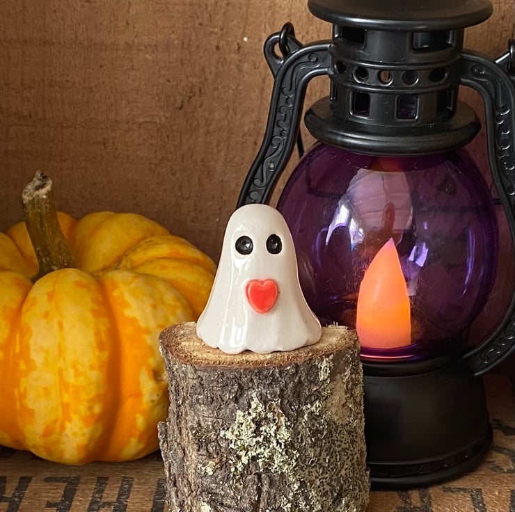 This teeny ceramic ghost decoration has been made from white earthenware clay. It has been hand sculpted so no two will be exactly the same (you may not get the one that has been photographed but yours will be equally as cute!) It has been fired twice and finished with a clear, glossy glaze. It measures approx 3cm x 2.5cm