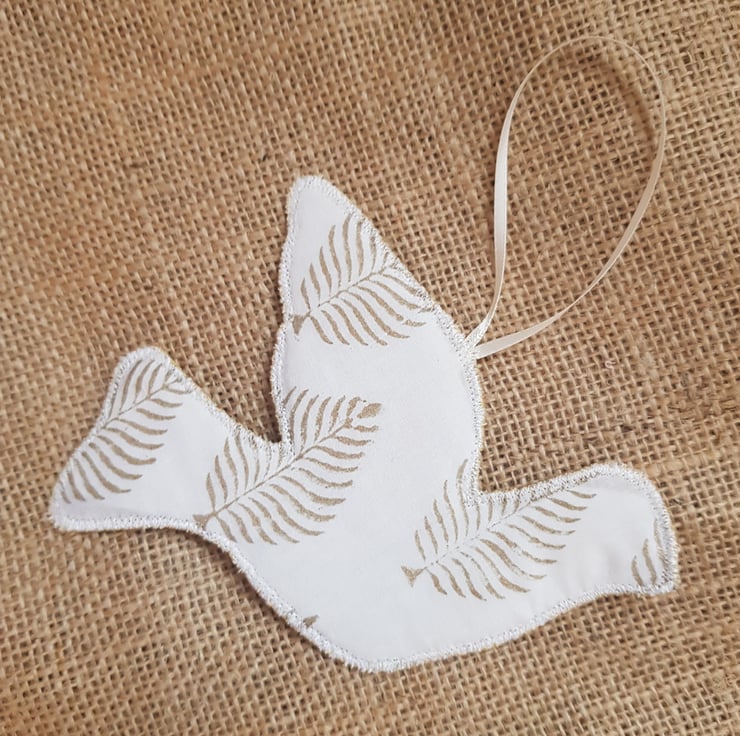 Sari silk dove hanging decoration: ivory and gold