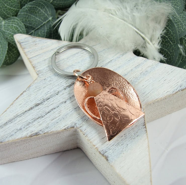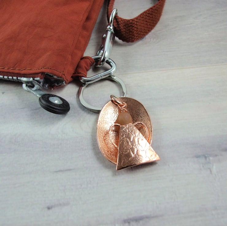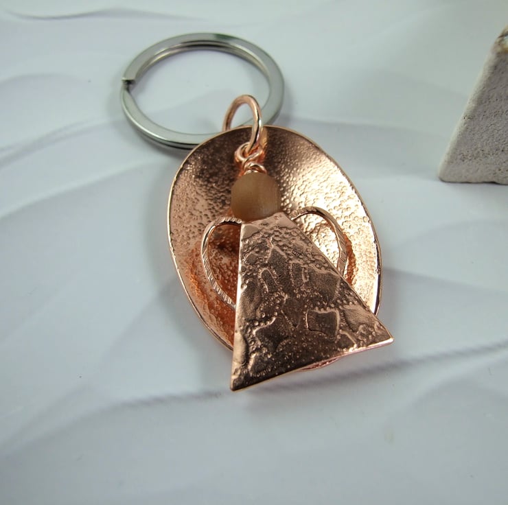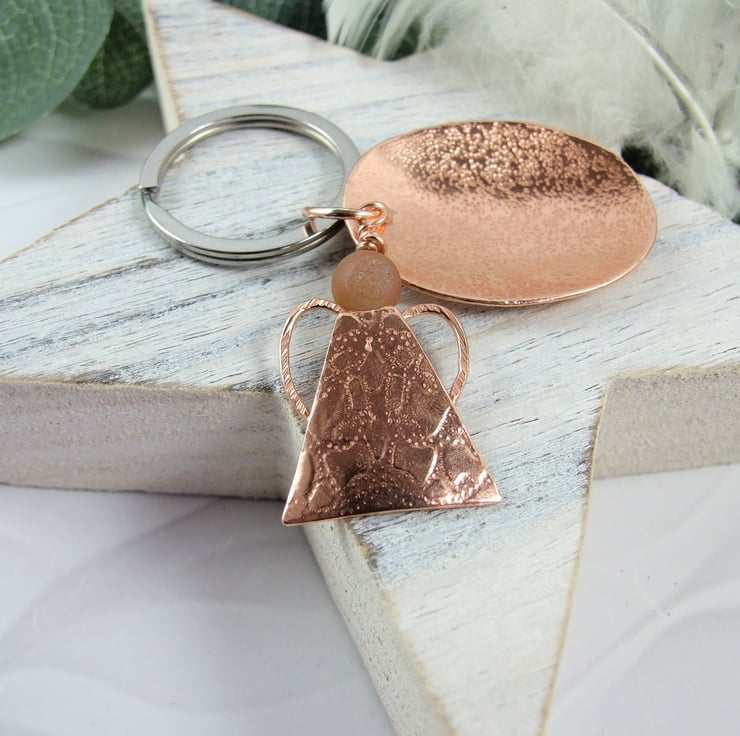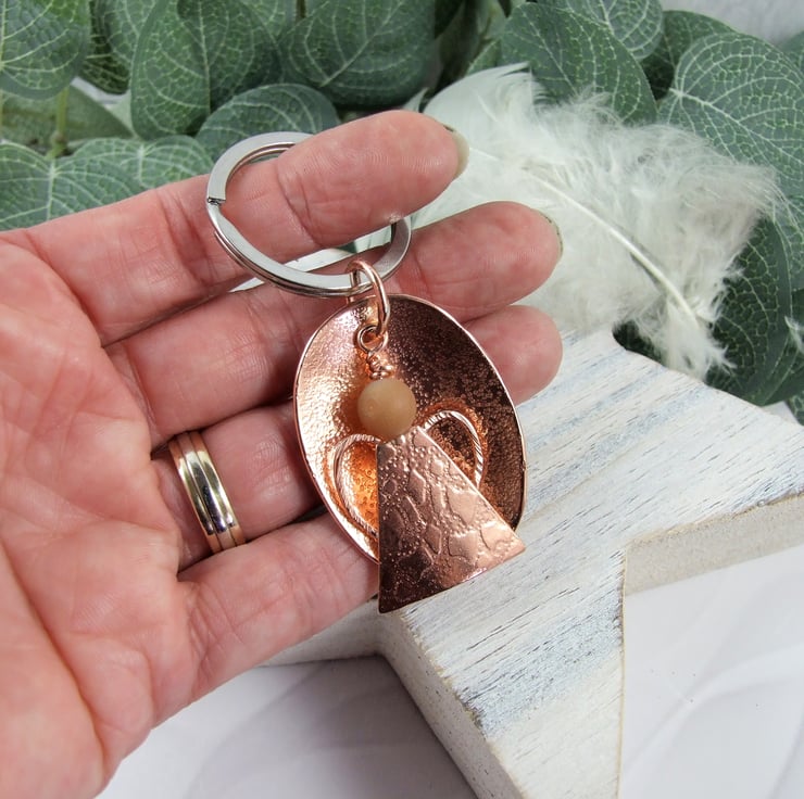 Keyring, Copper and Druzy Agate Guardian Angel Bag Charm. 7th Wedding Anniversary Gift. Could also be used as a hanging decoration or a Christmas Tree decoration.