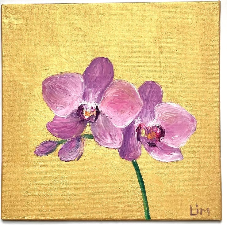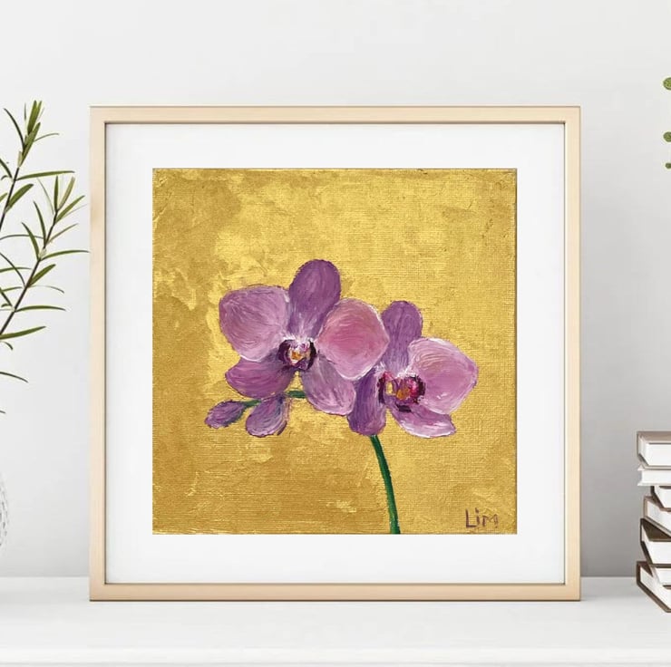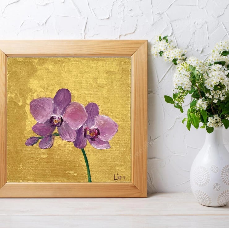 ORCHID, FLORAL ORIGINAL ART, FLOWER OIL PAINTING.