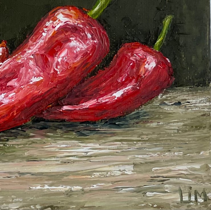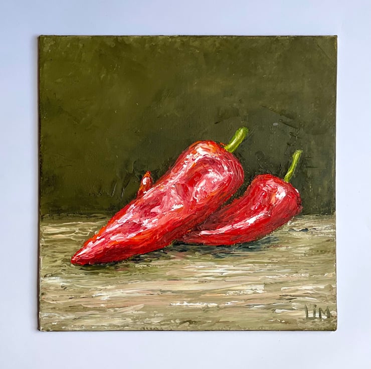 Red Peppers Painting Original Kitchen Art Vegetable Still Life Oil on Canvas Foo