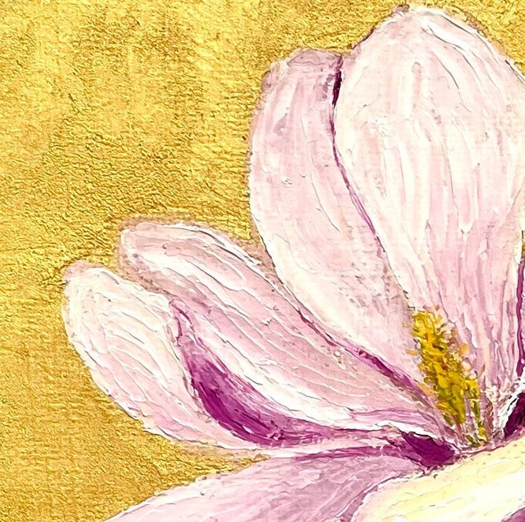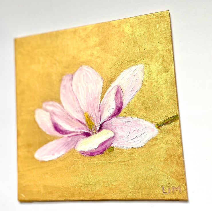 Original small oil painting is 100% hand painted on canvas board, one of the kind, in impasto technique with palette knife. Magnolia wall art is signed by artist (me) on the front and back side. This impasto painting does not come framed.