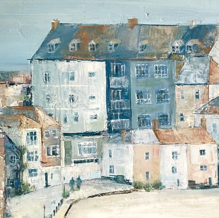 Original oil painting is 100% hand painted on a stretched canvas in a contemporary style. Cornwall painting is signed by artist (me) on the back side. This seaside painting does not come framed.