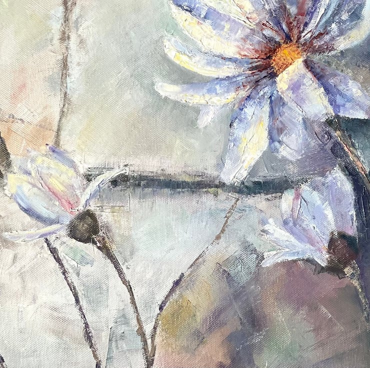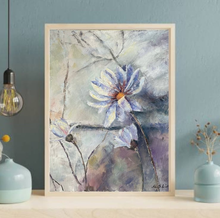 Original oil painting is 100% hand painted on canvas board, one of a kind art, in impasto technique with palette knife. Floral wall art is signed by artist (me) on the front and back side. This abstract painting does not come framed.