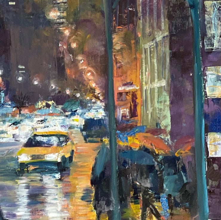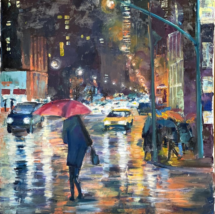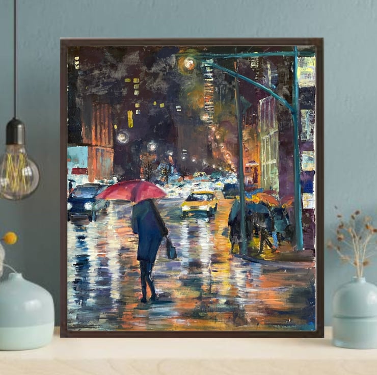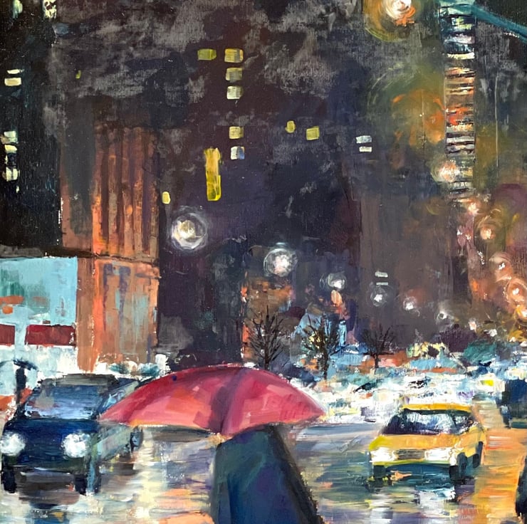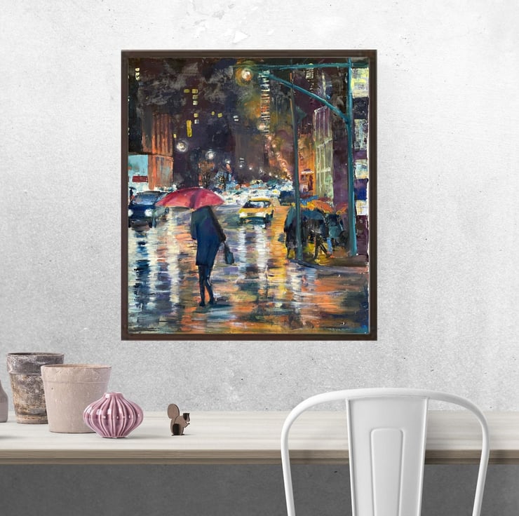 Rainy Painting NYC Canvas Original City Wall Art Dark Abstract New York Artwork