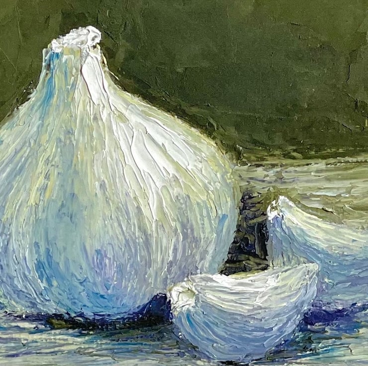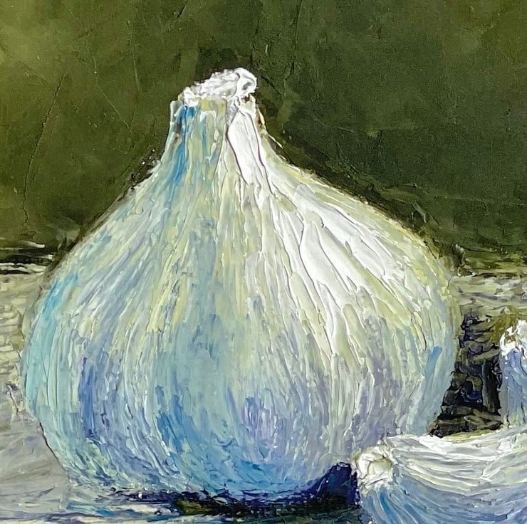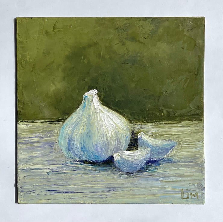 Garlic Painting Original Impasto Kitchen Artwork Food Art Small Vegetable Still
