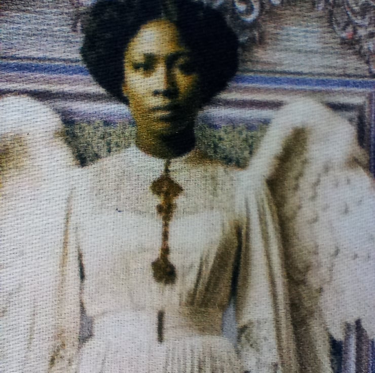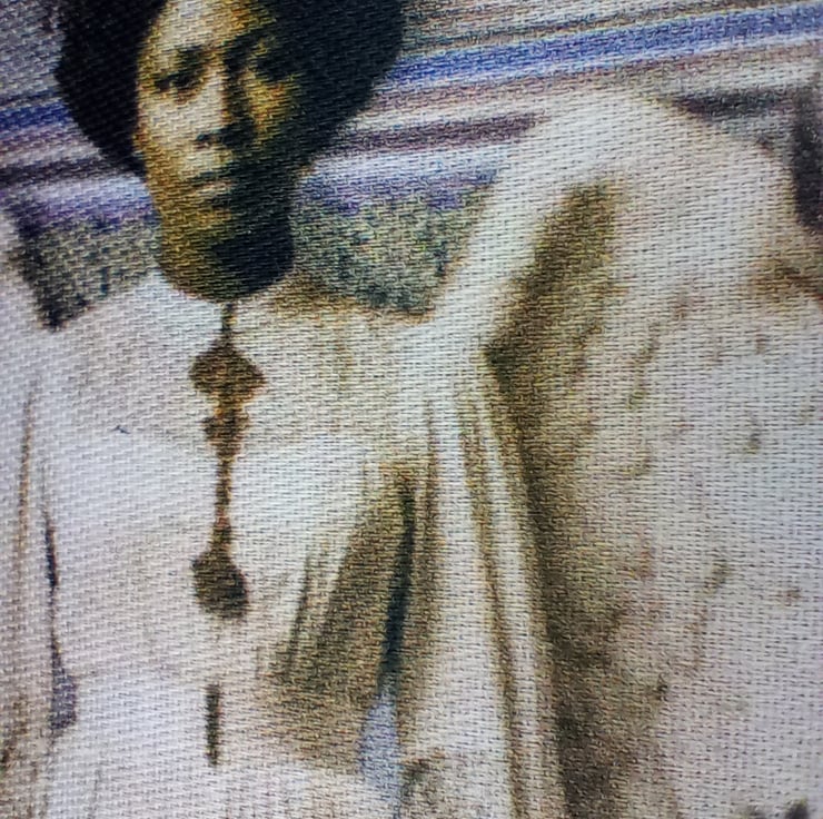 The fabric is cotton satin, professionally printed and is washable. I have added a border so less of the image is lost in a seam allowance.