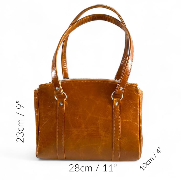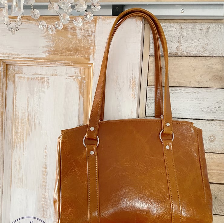 This beautiful, handcrafted tan leather shoulder bag is as functional as it is stylish.