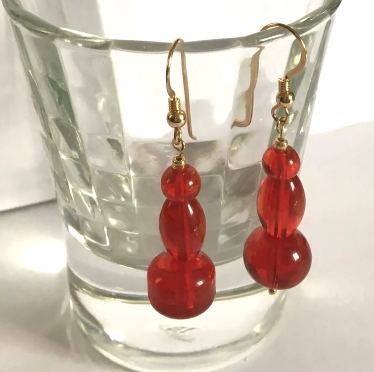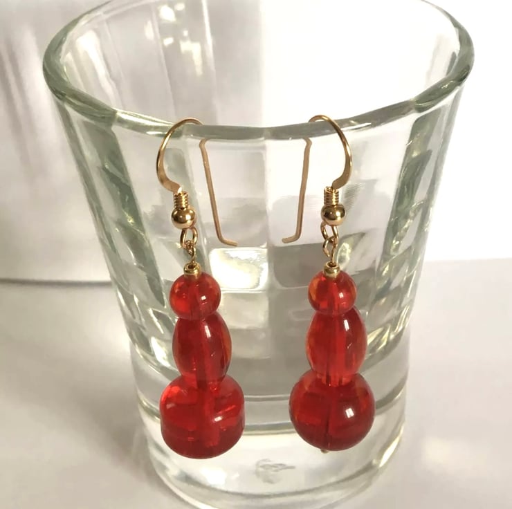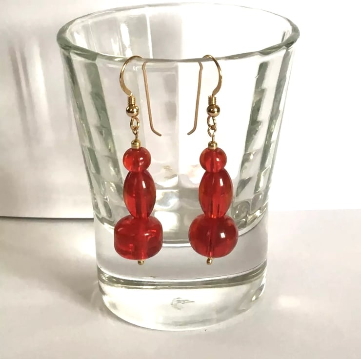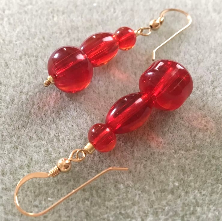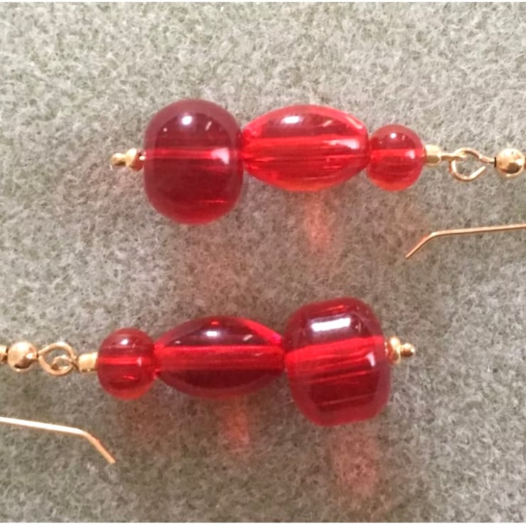 Created using quality Gold Filled Shepherd Hooks and Assorted Shapes Red Acrylic Beads