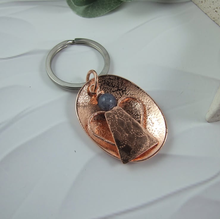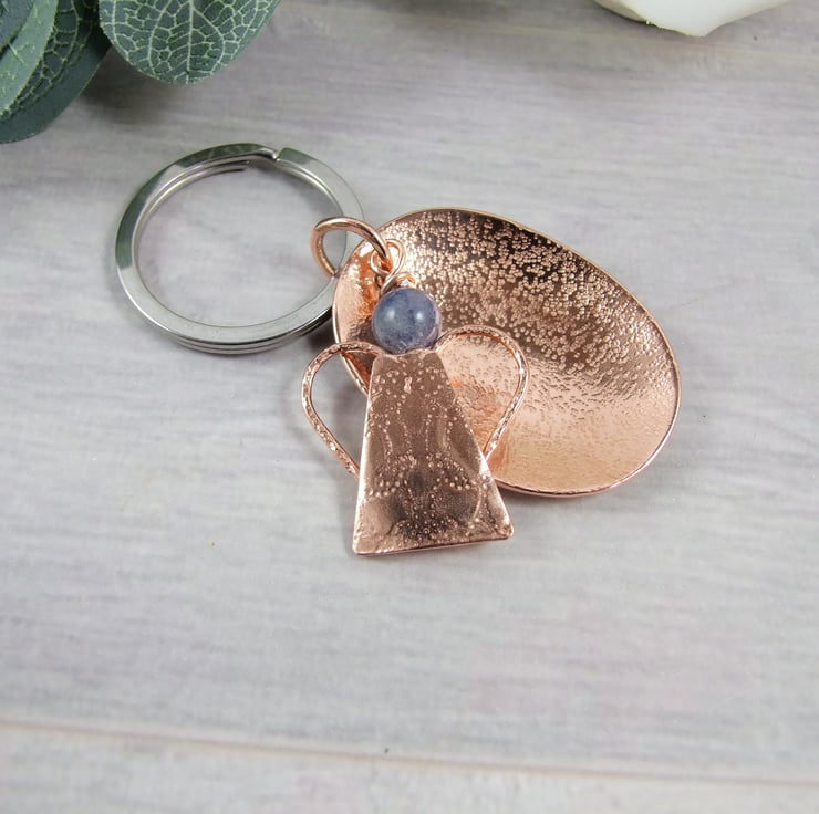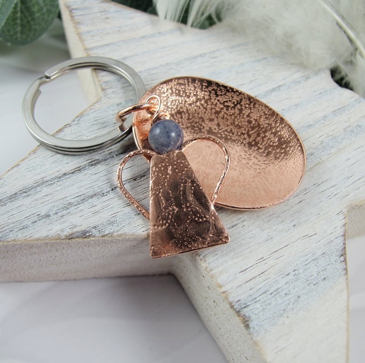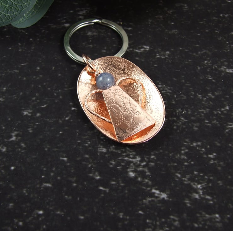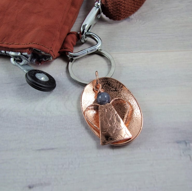 Bag Charm, Copper and Blue Aventurine Guardian Angel Bag Charm. 7th Wedding Anniversary Gift. Could also be used as a hanging decoration or a Christmas Tree decoration.