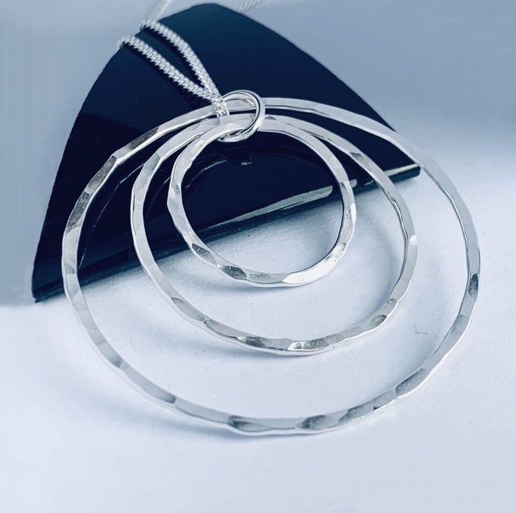 Simplistic trinity hoop pendant hammered texture