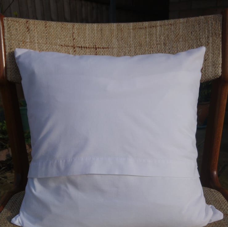 The reverse of the cover is in plain white and features a wrapover opening for insertion of cushion pad (not included)