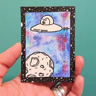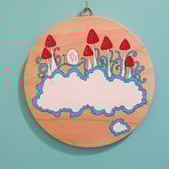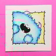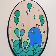 This is a small acrylic painting on canvas It measures about 7cm x 7cm (c2.5" x 2.5"), and can be hung on the wall with a nail, or looks equally nice propped up on a shelf.