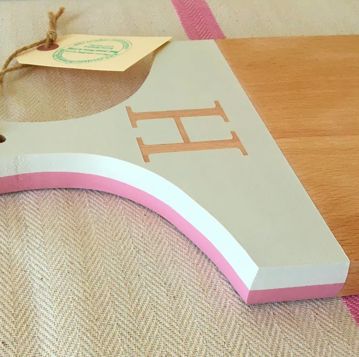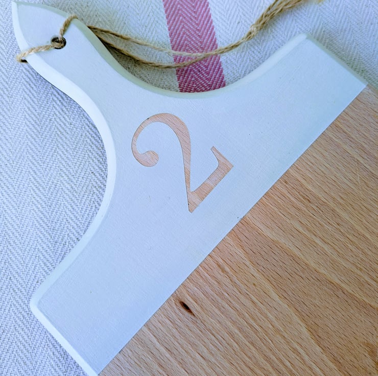 The Flipside chopping board isn;t just practical but also looks great in any kitchen or food event. Use one side for sweet and the Flipside for savoury or as a serving board. Add a personal touch to your board to make it truly unique with your choice of colours and a number or letter on each side and I will hand paint and stencil your board in a tasteful font as pictured. It’s then finished in a coat of natural clear varnish for extra protection and seasoned with a food grade mineral oil to protect and enhance the natural grain of the wood.