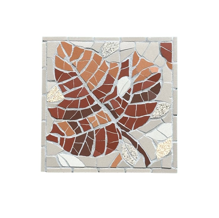Mosaic Botanical Art - Red Leaf Mosaic Wall Plaque in Grey