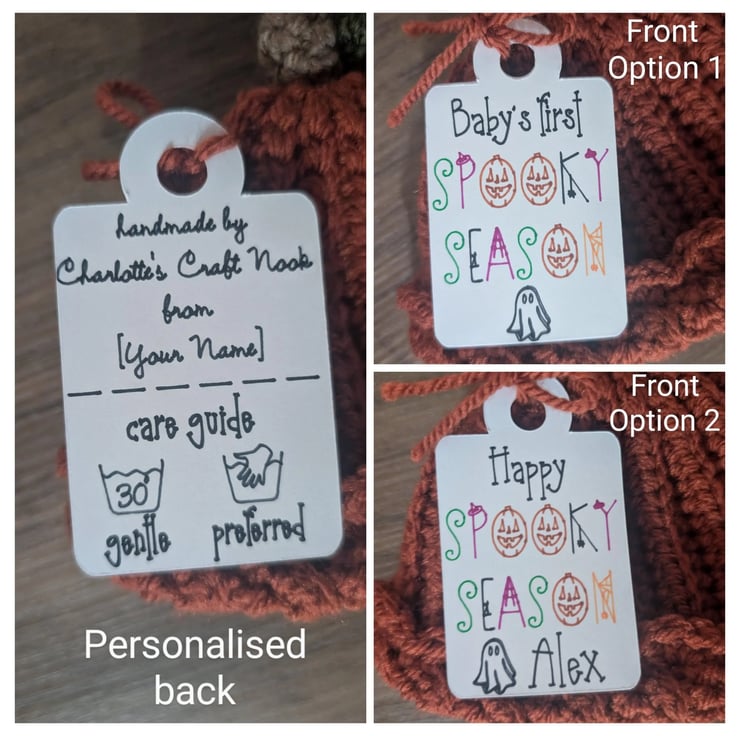 Personalise your hat with a custom tag! Choose from "Baby's first" with a personalised name (option 1) or simply add a name to the tag (option 2). Please specify the recipient's name for the front and the sender's name for the back in the personalisation box.