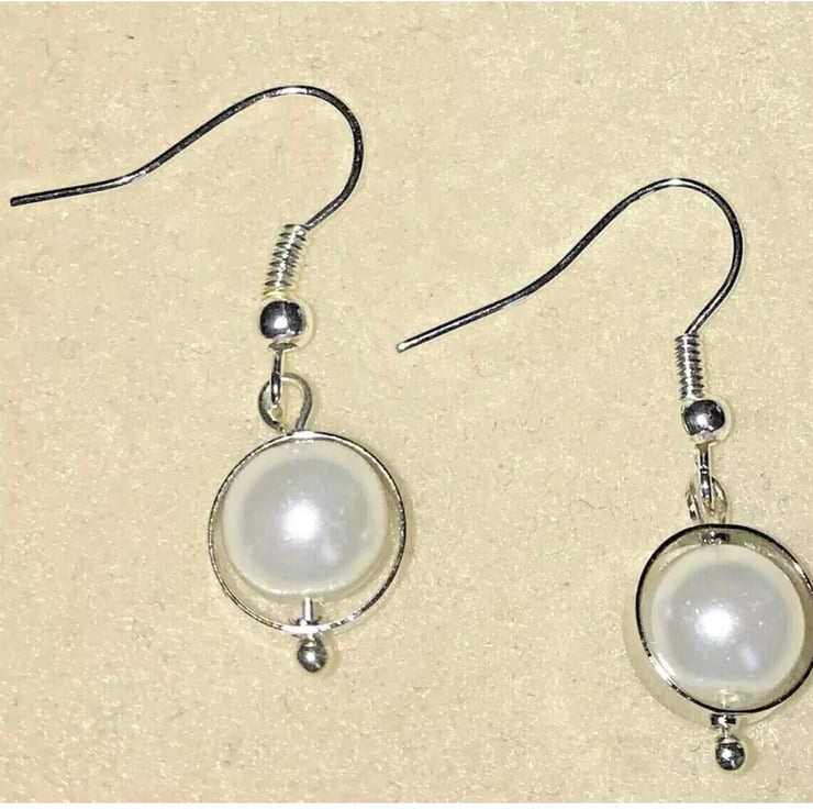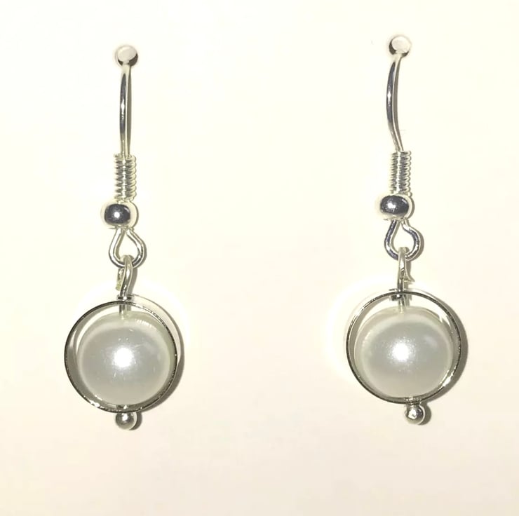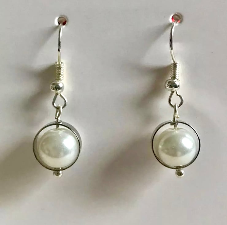 and a 6mm Faux Pearl round bead which is enclosed within a 10mm x 3.5mm Rhodium Plated Connector Ring