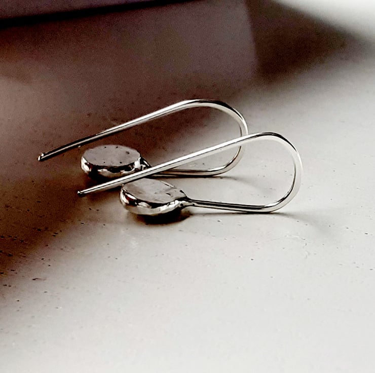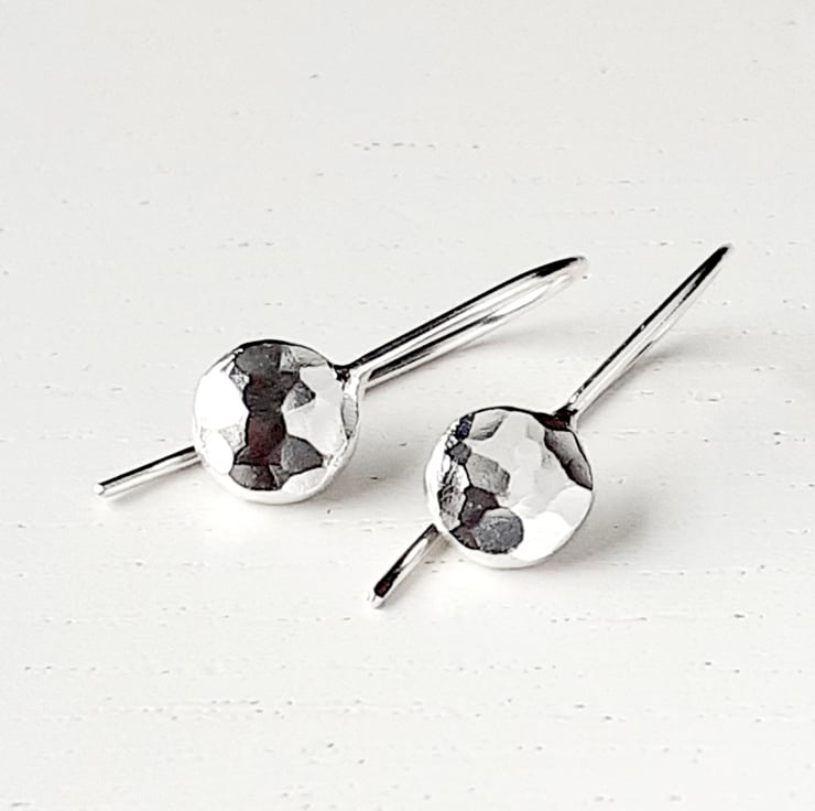 These little earrings are made from recycled silver, hammered and textured, slightly mis-shaped.