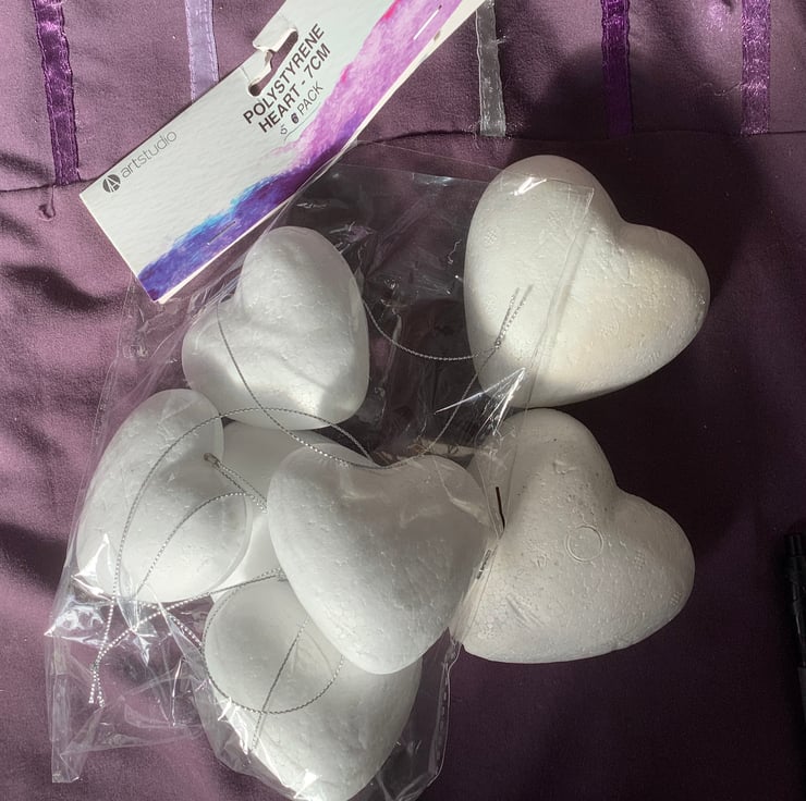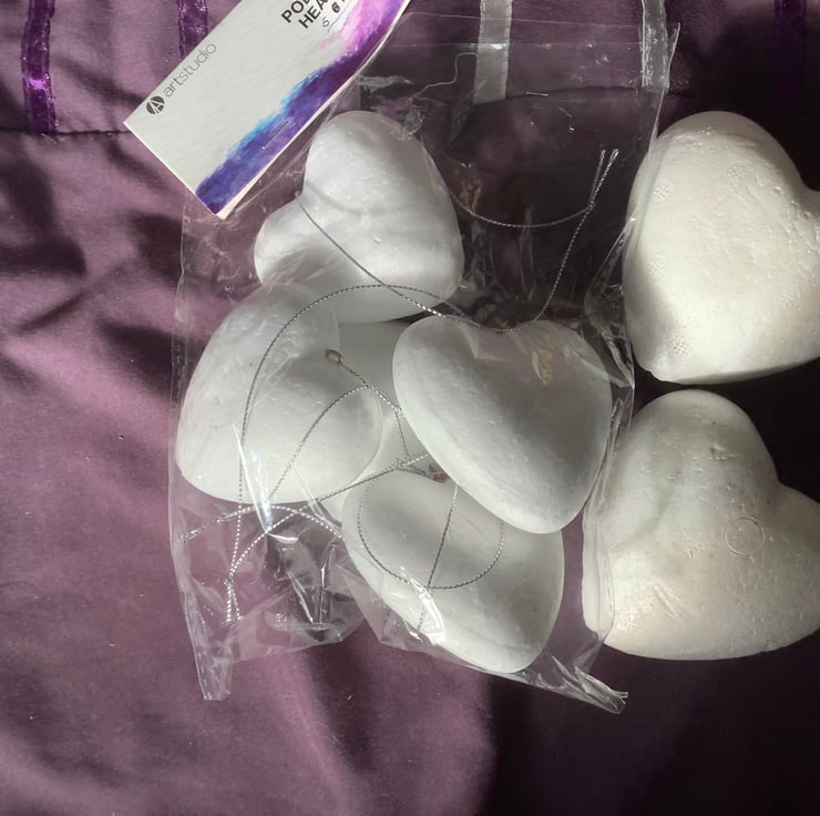 I have combined two sizes of polystyrene hearts for this listing.