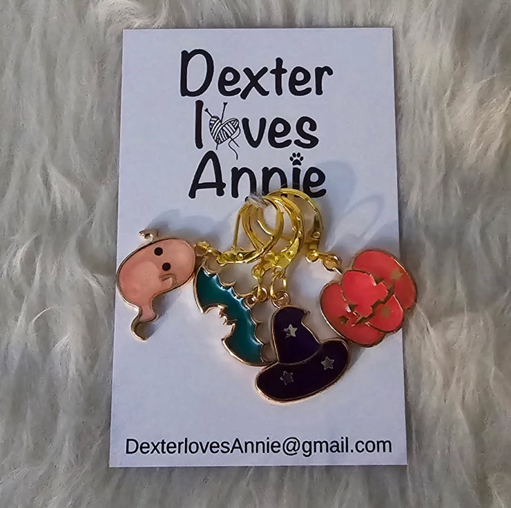 This is a set of 4 bright and colourful Halloween themed stitch marker / progress keepers