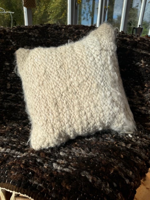 Pure White Alpaca cushion cover. Hand spun and hand woven in the Scottish Highlands.