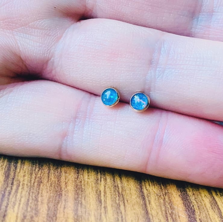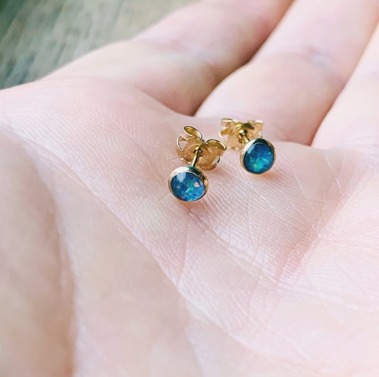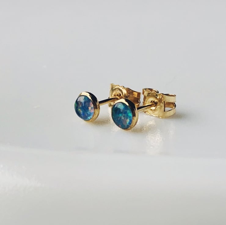 little 4 mm 9carat gold stud earrings set with beautiful round opal triplet gemstones.